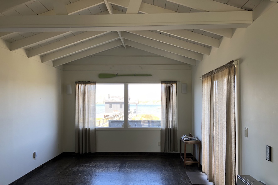 Nestled along the Inverness shoreline, this charming yet minimal cottage was reimagined as a place to slow down. The former ADU was joined with the main home to create a primary suite that opens to sweeping water views, with a bistro set for early morning coffee. A partially open bathroom plan lends a sense of spaciousness, while the kitchen was opened up to bring in more light and air. Wall paneling, classic black-and-white tile, and natural materials keep the palette calm and timeless, and pieces from the original architect–owner, including the painting above the tub, connect the home’s past to its present. Casual and inviting, it’s a retreat where life unfolds at an easier pace.